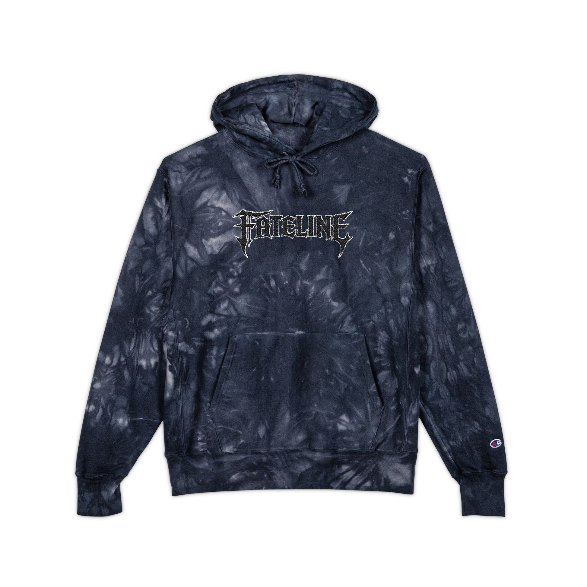 Fateline Tie-Dye Embroidered Hoodie — Black Marble "Treasure" Design